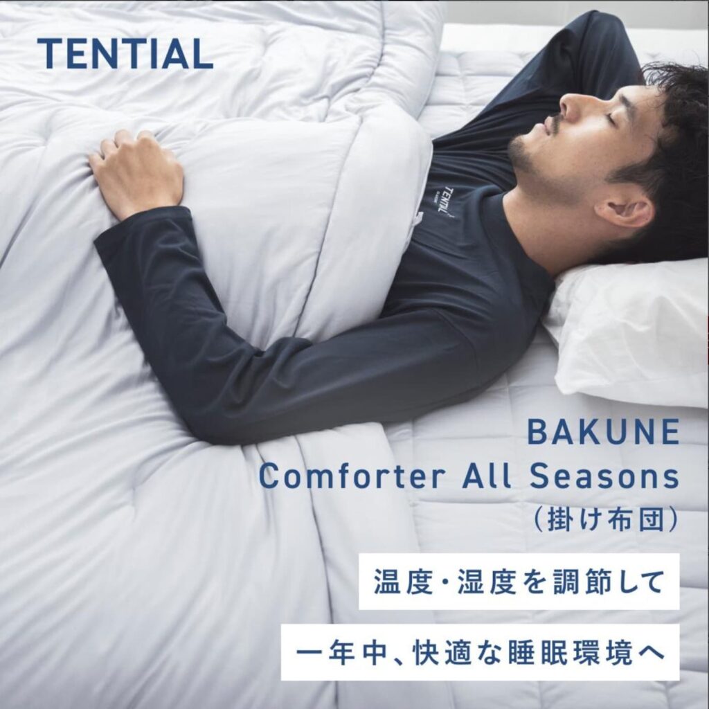 「BAKUNE Comforter All Seasons」は、TENTIALが手がけるオールシーズン対応の高機能掛け布団のことです。軽さ・快適さ・清潔さを兼ね備え、1年中快適に使えるよう設計されています。
