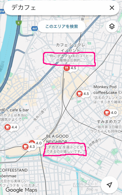 デカフェの探し方①Googleマップの口コミをチェックする