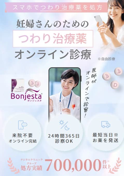 妊娠中のつわり症状に対して、来院不要で医師の診察・処方を受けられるオンライン診療です。